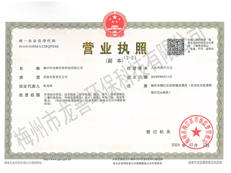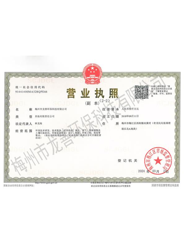 梅州市龍善環(huán)保科技有限公司為龍善環(huán)保股份有限公司(簡稱“龍善環(huán)保”)子公司。龍善環(huán)保于1995年12月成立,注冊資本為人民幣6,000萬元,總部位于深圳市南山區(qū)月亮灣大道2078號兆龍大樓16層。公司經(jīng)生態(tài)環(huán)境部、廣東省生態(tài)環(huán)境廳、深圳市生態(tài)環(huán)境局、深圳市交通運輸委員會、深圳海事局等部門許可專業(yè)從事陸地和海洋環(huán)境保護(hù)產(chǎn)業(yè)的高科技民營企業(yè),主要經(jīng)營業(yè)務(wù)包括工業(yè)廢物收運、資源化利用和無害化處理處置、海洋船舶污油水接收和集中處理處置、突發(fā)環(huán)境事故清污應(yīng)急處置等......